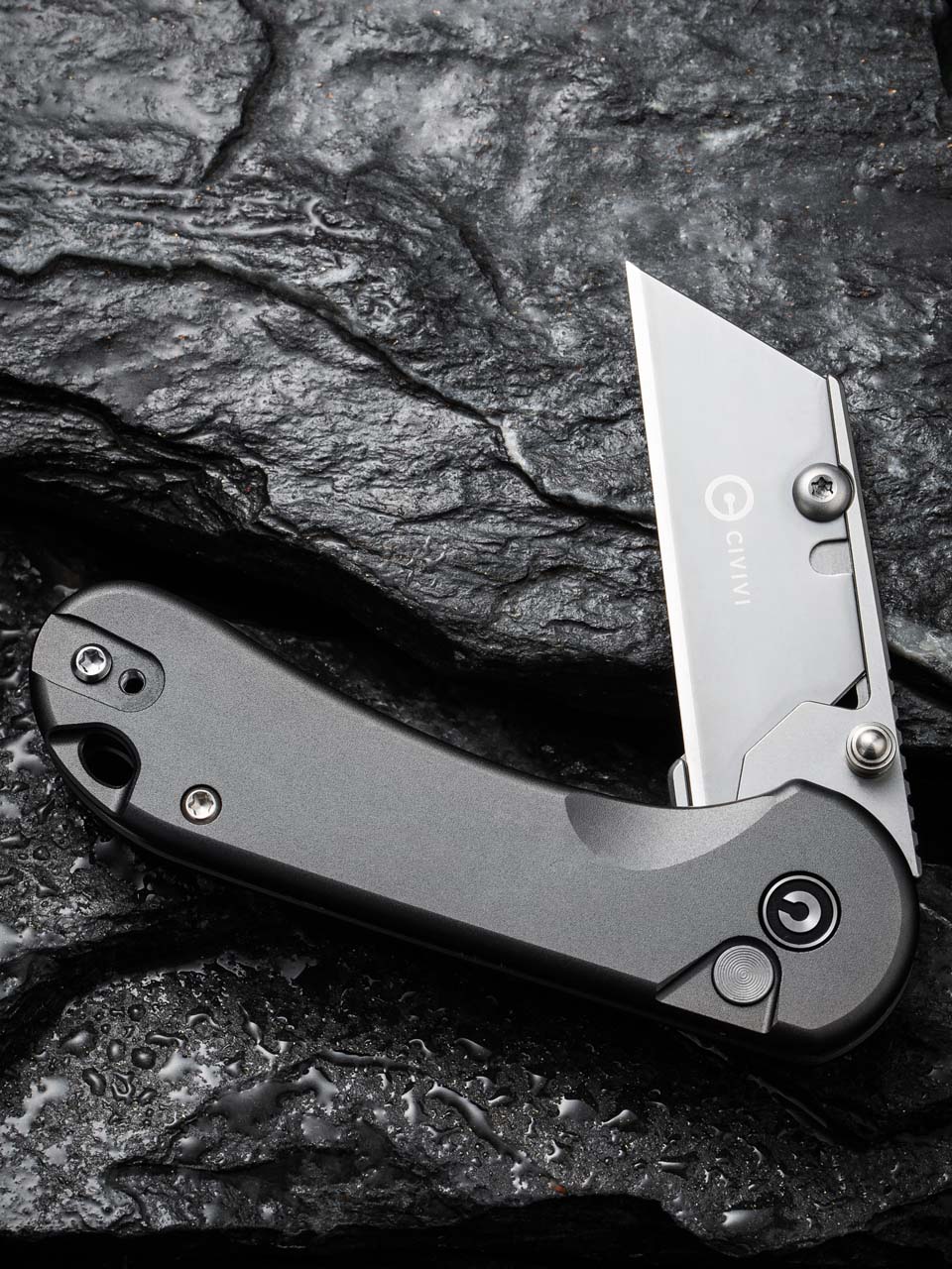 Канцелярський ніж замість класичного клинка робить Civivi Elementum Utility ідеальним не тільки для повсякденних завдань, але й професійної діяльності. Тонне і точне лезо легко справляється з різкою картону, мотузок, шкіри, пластику та гуми. В комплект входять три змінні клинки, виготовлені з нержавіючої сталі 6Cr та оброблені методом галтування для усунення блиску.